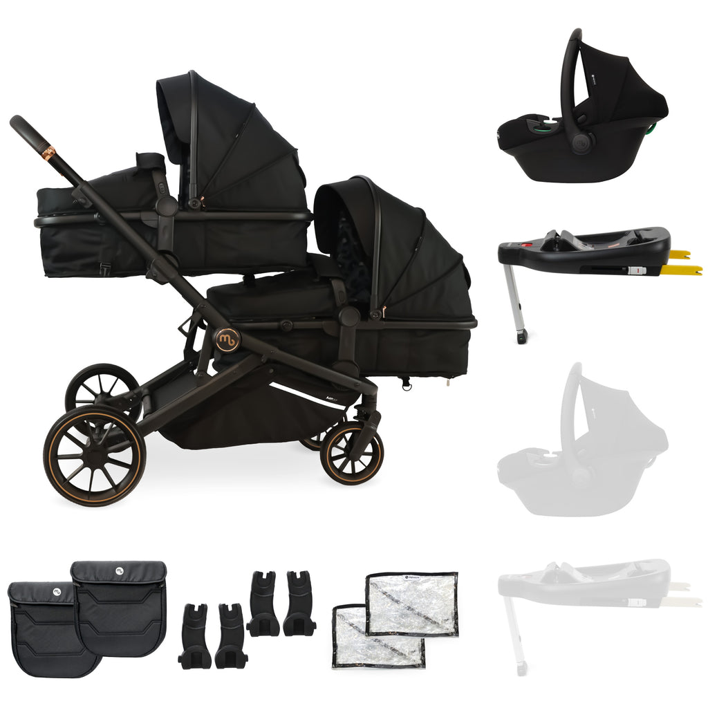 The MB33 tandem can be used with car seats too! It comes with 2 sets of car seat adapters (compatible with the My Babiie i-Size infant carrier and Maxi Cosi).