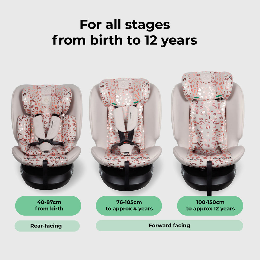 The My Babiie MBCS300 Spin Car Seat is designed to grow with your child from birth up to 12 years old, covering Groups 0+, 1, 2, and 3. With four recline positions and removable inserts, including baby wedges, it ensures your little one always sits in an ergonomic position that supports healthy spine development. Whether it’s a newborn or a growing child, comfort is a priority. The 5-point harness automatically adjusts with the headrest, keeping your child secure and correctly positioned at all times.