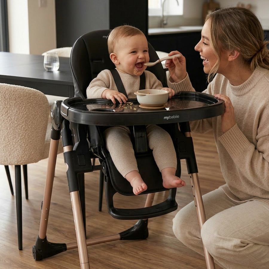 With its lie-flat recline, adjustable foot-rest and padded seat, the MBHC9 can be a part of their weaning journey even before it begins.