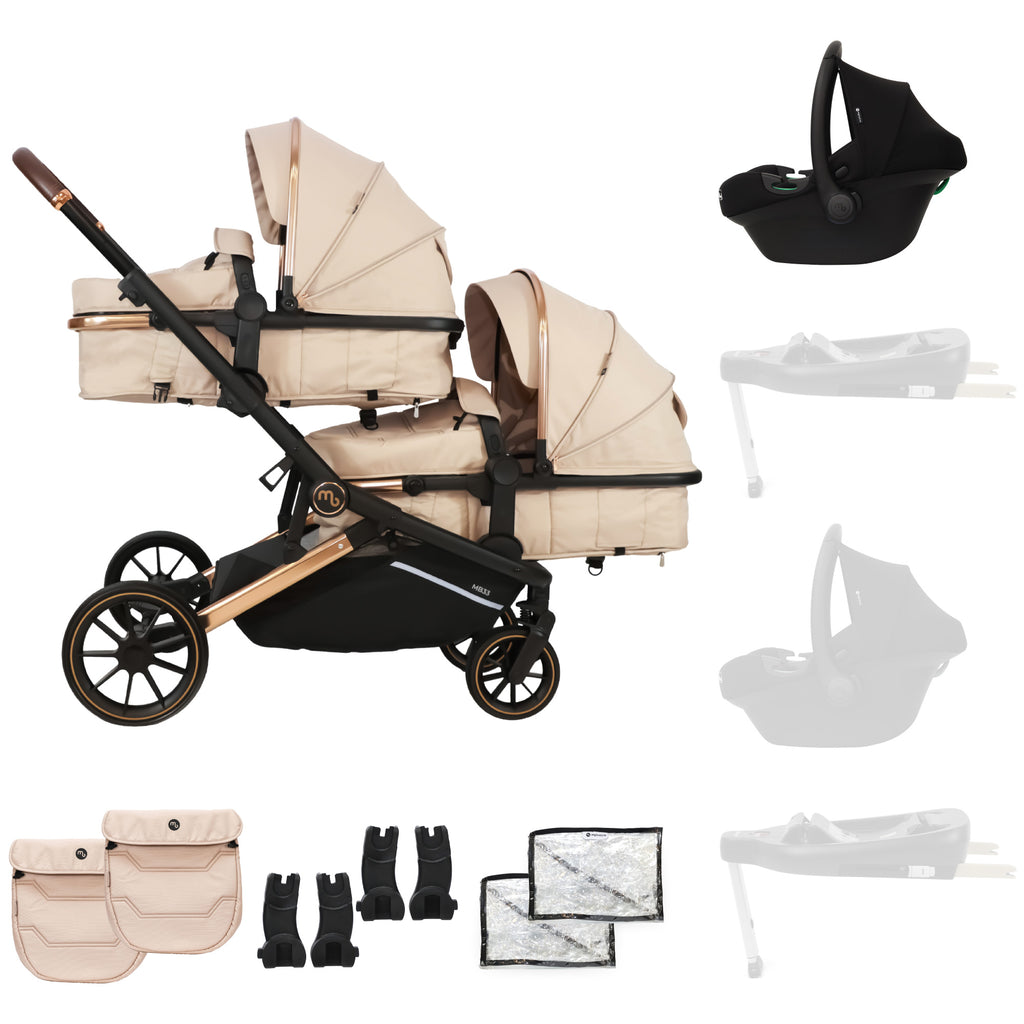 The MB33 tandem can be used with car seats too! It comes with 2 sets of car seat adapters (compatible with the My Babiie i-Size infant carrier and Maxi Cosi).