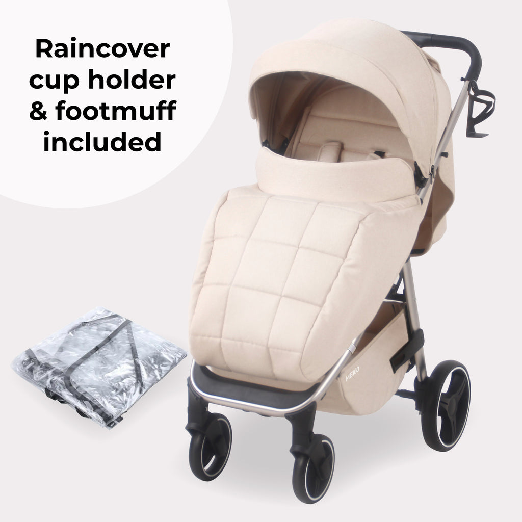 Introducing the MB160 Pushchair, the updated version of our walking pushchair. With modern, textured oatmeal fabrics this pushchair can carry toddlers up to 22 kg, and combines style and functionality to suit every use.