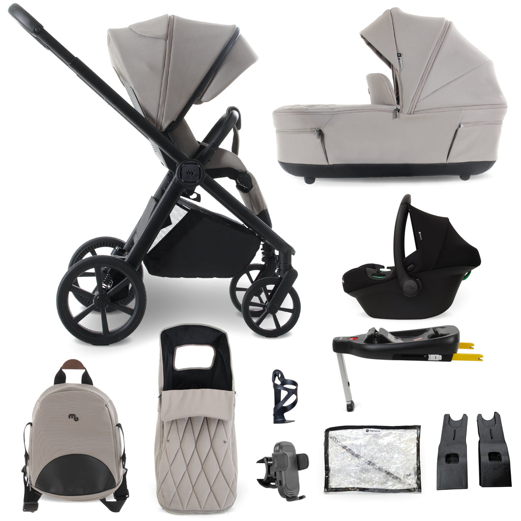 The My Babiie MB450 Luxe Travel System is your all-in-one, ultra-stylish solution for parenthood on the go. Designed to adapt from birth through toddlerhood, this elegant system includes a carrycot, stroller seat, i-Size infant carrier and base, plus premium accessories like a quilted footmuff, matching changing bag, attachable phone holder, and raincover.