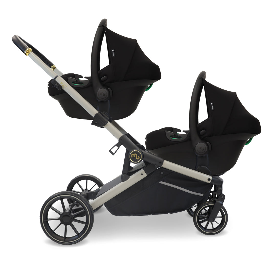 The MB33 tandem can be used with car seats too! It comes with 2 sets of car seat adapters (compatible with the My Babiie i-Size infant carrier and Maxi Cosi).