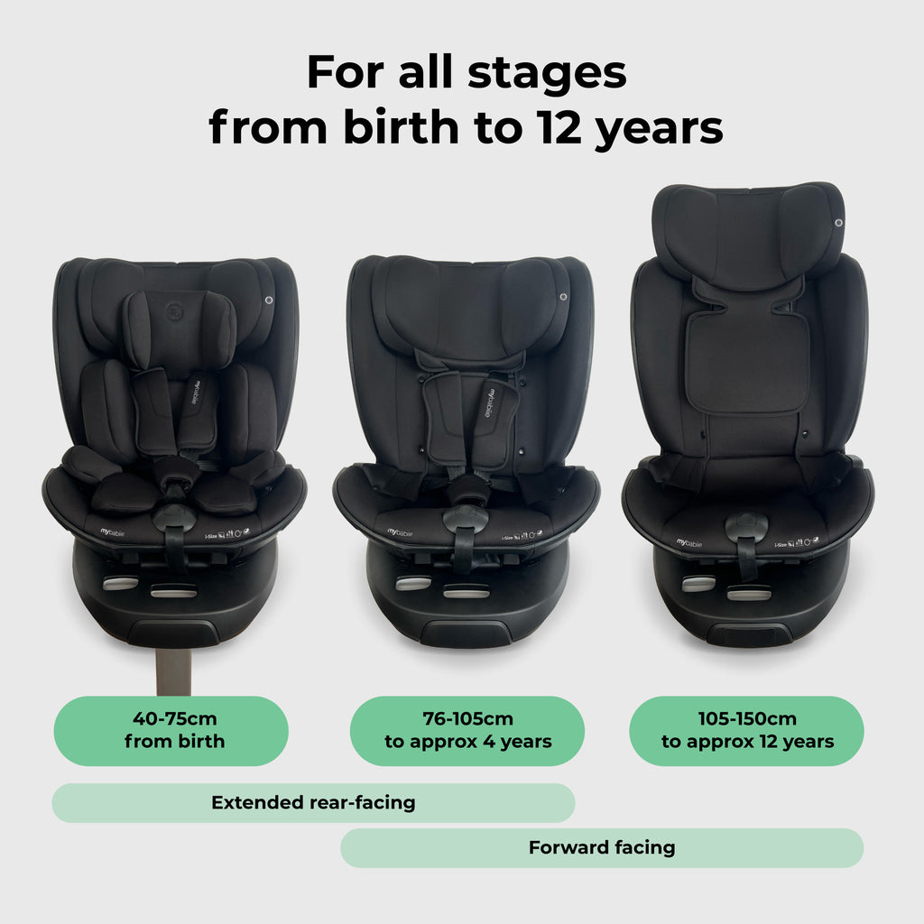 The My Babiie Toddler Seat Set grows with your child from birth to ~12 years andmust be used on the MBCS05 rotating ISOFIX base.