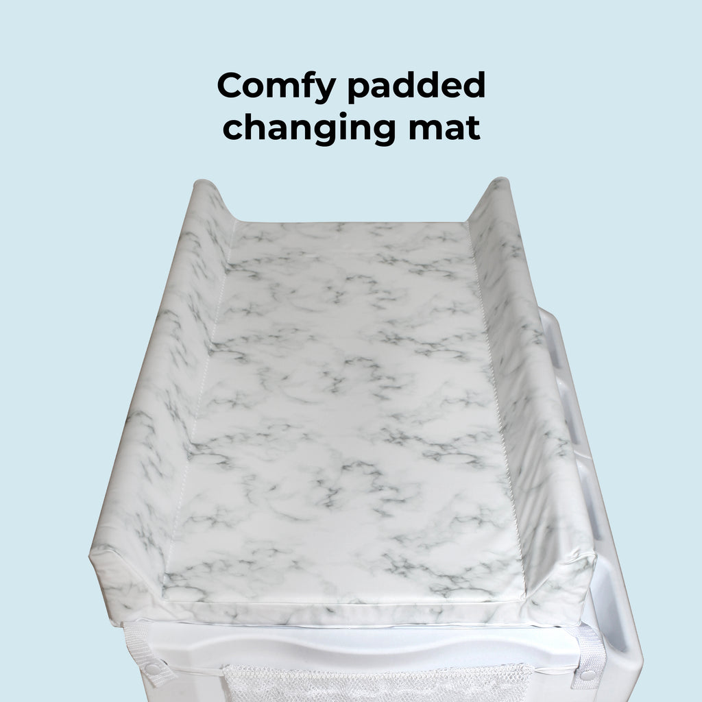 This changer unit is easy to assemble and looks gorgeous. With a concealed bath under the changing mat and handy drainage tube bath times for your little one will be as easy as pie! The changing unit also has loads of handy storage space underneath for all your nursery essentials and lots of trays to keep nappies, wipes and bubble bath in easy reach.